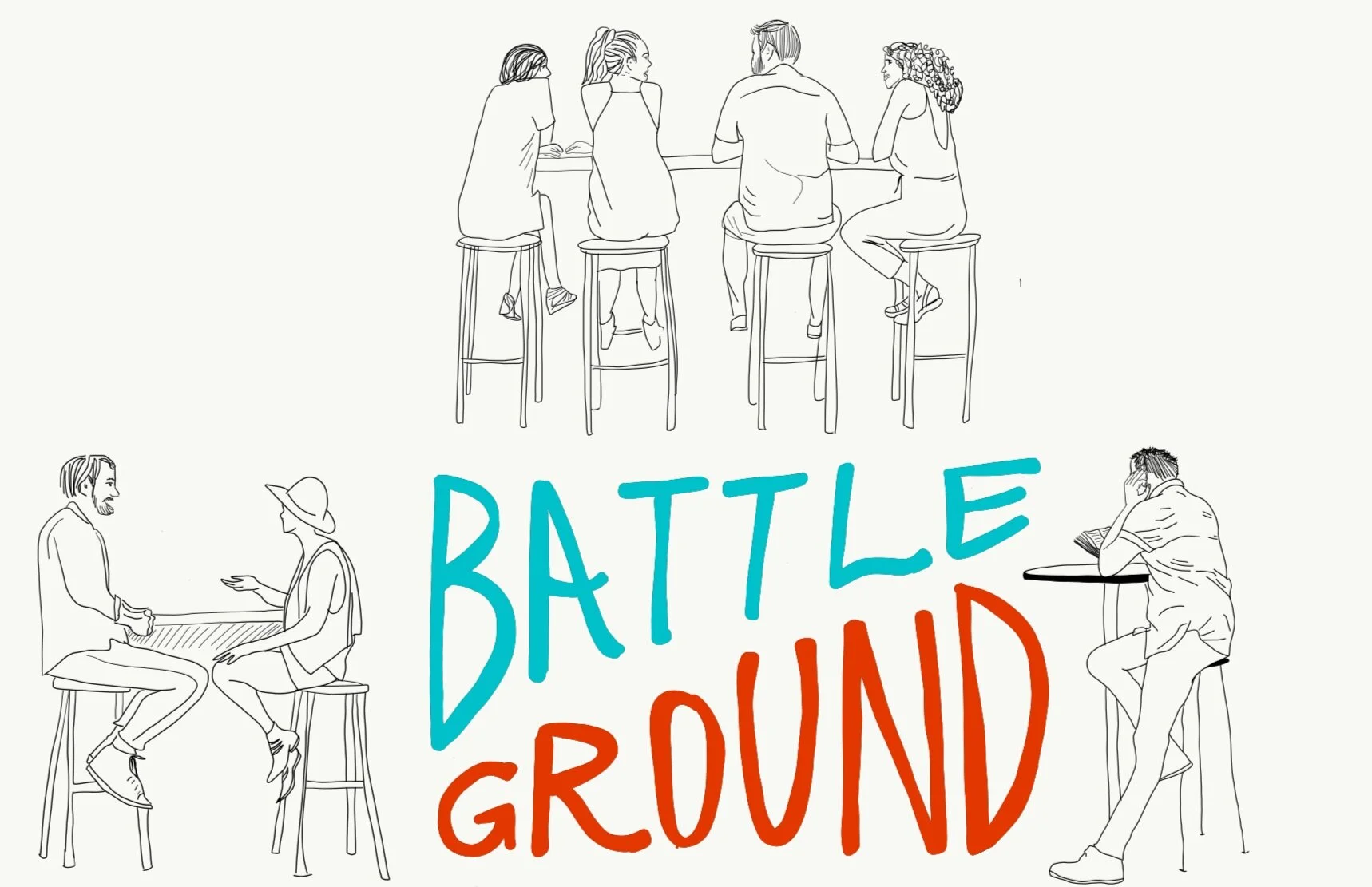 Logo, t-shirt, packaging and menu design for Battle Ground: A Social Justice Taproom in Ohio.